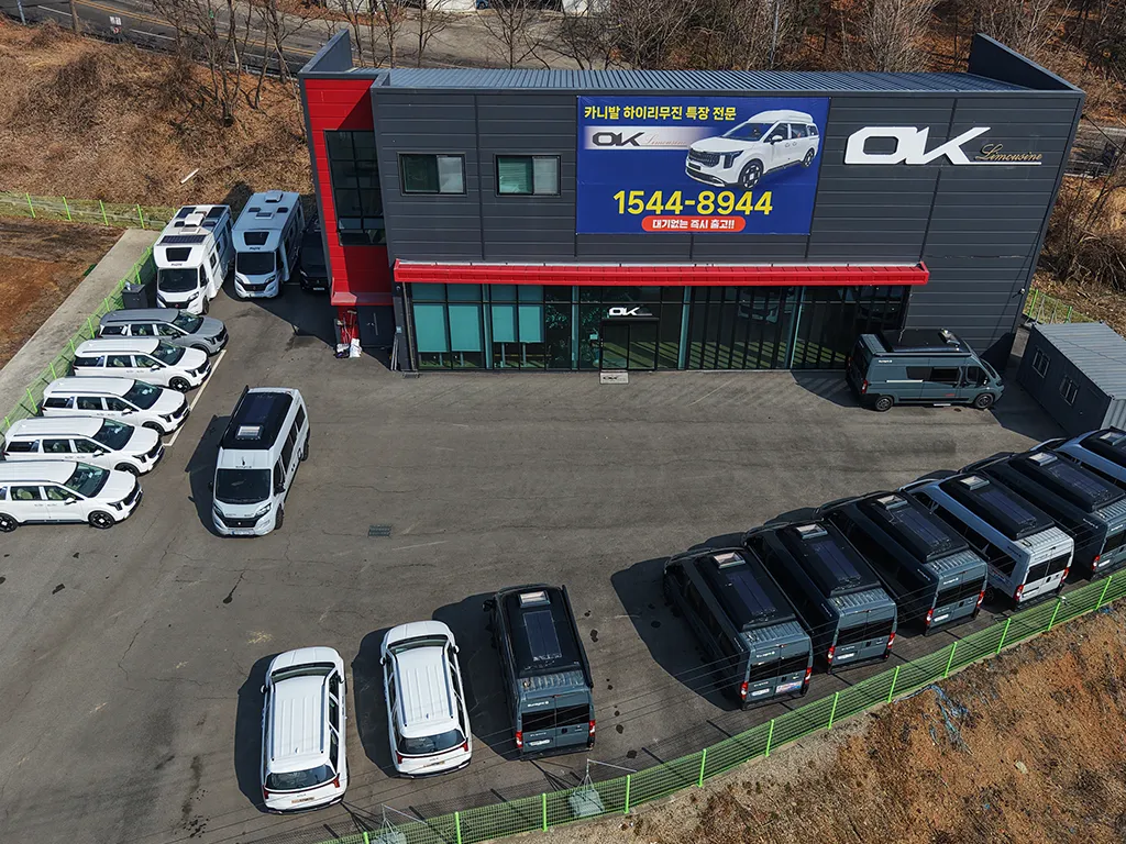 용인에 위치한 OK리무진 전시장에서 차량을 직접 확인하시고 견적 상담까지 받으실 수 있습니다.